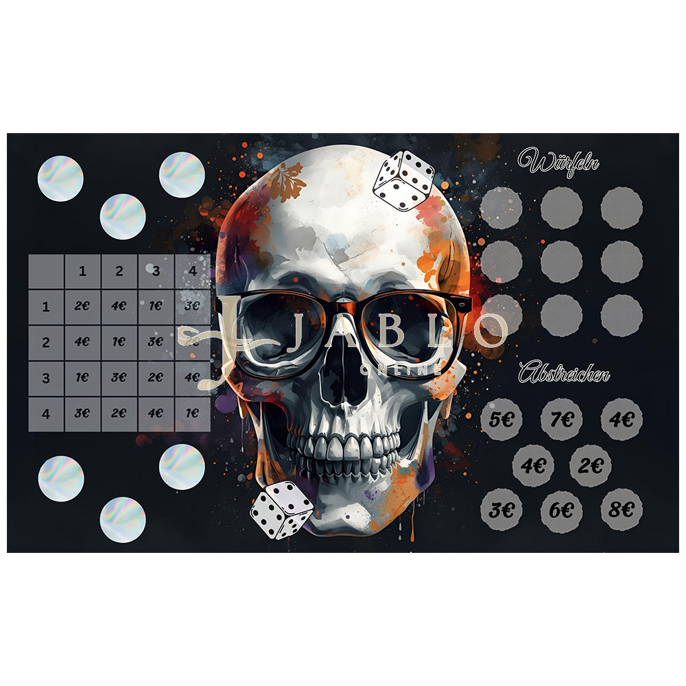 Hier hast du ein 4 auf 4 Bingo und was zum rubbeln, würfeln und abstreichen.
