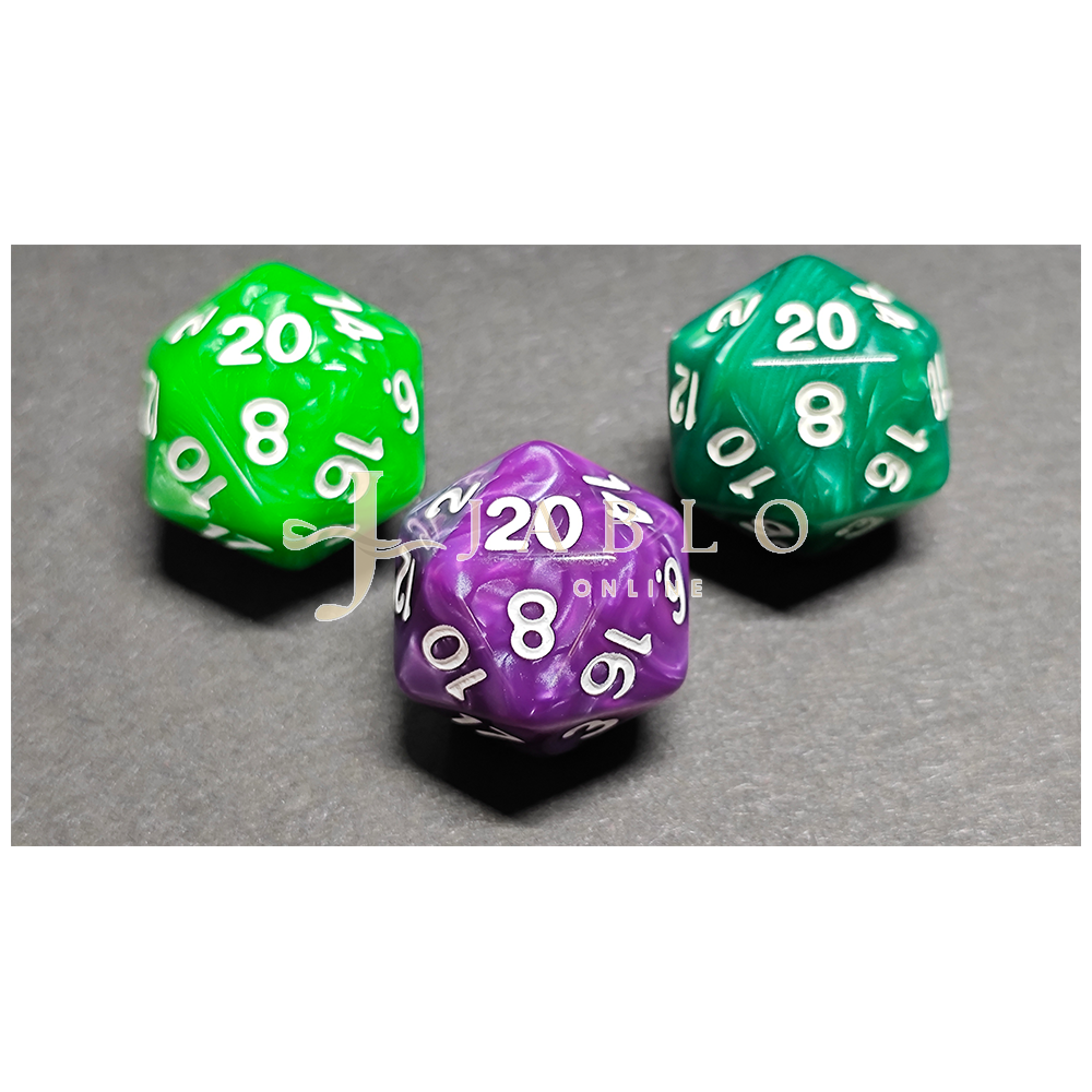 20-seitiger Würfel, einzeln erhältlich in 3 verschiedenen Farben.